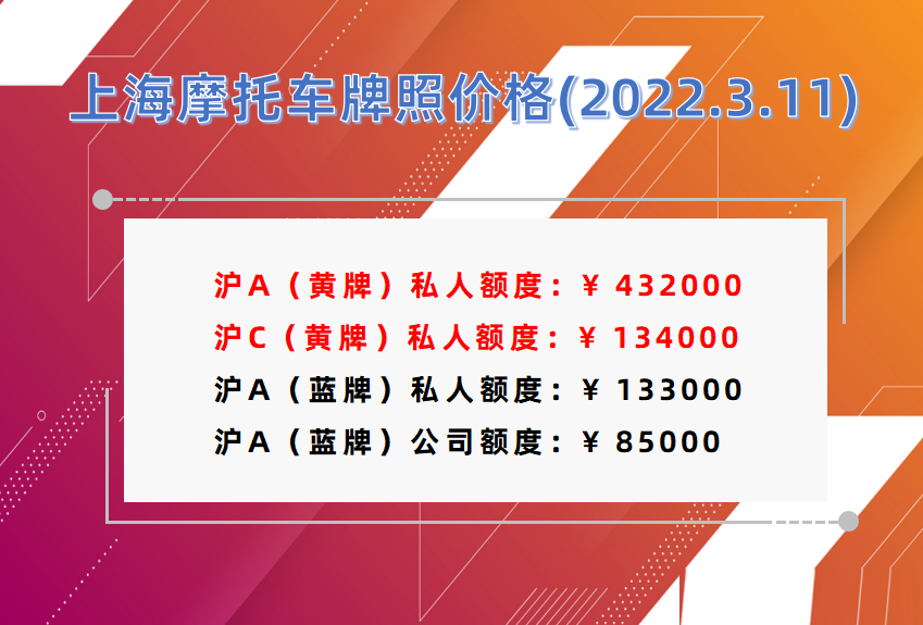 | 2022年3月11日上海沪牌摩托车牌照价格 | |